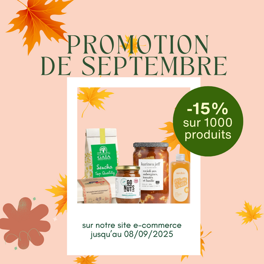 *Ingrédients issus de l'agriculture biologique - ① 70 % du total des ingrédients d’origine agricole sont issus du commerce équitable contrôlé selon le référentiel FiABLE. Plus d’informations sur www.BIOPARTENAIRE.com.