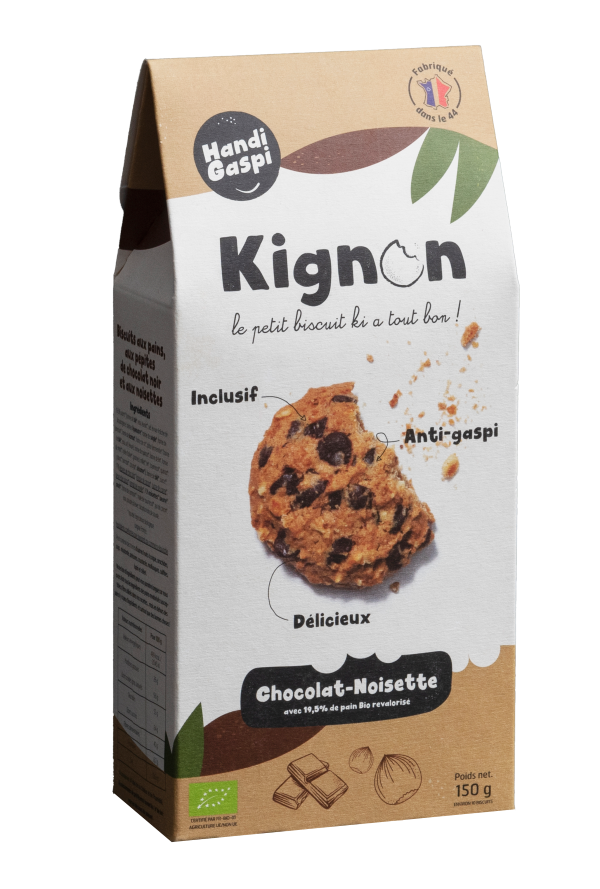 Des pépites de chocolat noir et des éclats de noisettes dans un biscuit bio aux pains, à la croustillance unique.